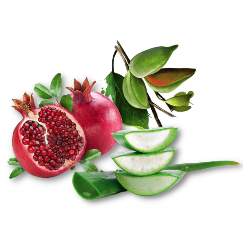 Signature blend of powerful anti-inflammatory, polyphenol rich Pomegranate, wild grown Australian Kakadu Plum rich in Vitamin C and healing and soothing Organic Aloe.