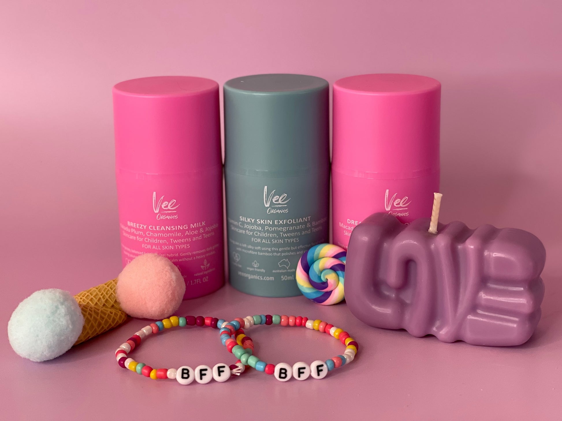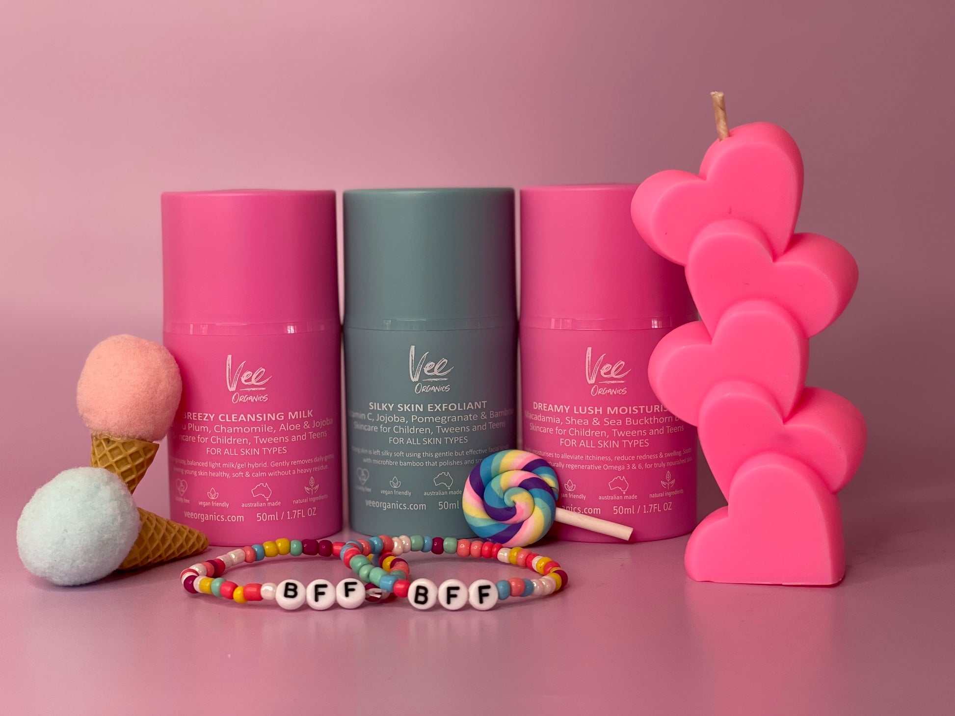 With that in mind - our philosophy is to take a natural approach to skincare for young skin focusing on high quality ingredients that are not a fashion statement - timeless and effective, for healthy skin habits at an early age. We believe the best skincare is created with skin, health, and life in mind. This is why we have replaced the harsh and potentially ageing chemical ingredients traditionally found in skincare with the innocence and effectiveness of organic and natural alternatives. Vee Organics products soothe, hydrate, and promote anti-acne benefits for healthy, glowing young skin.